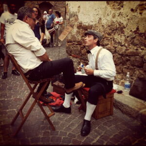 Ein staubiges Grammophon mit Handaufzug und 78 U/min und ein folkloritischer "theatralischer" Schuhputzer, der bereit ist, alles zu polieren, was Sie an Ihren Füßen tragen... sogar die Füße selbst!!!